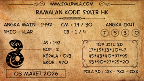SYAIR PREDIKSI KELUARAN HK, 3-Mar-2026