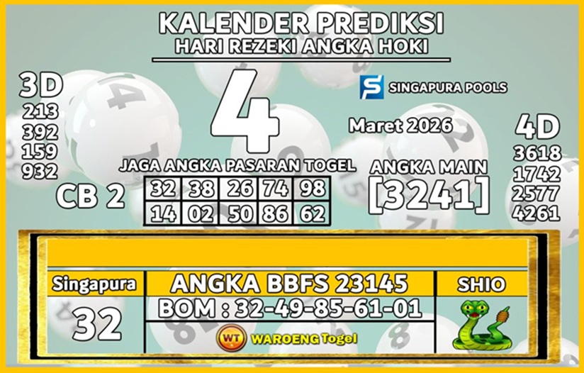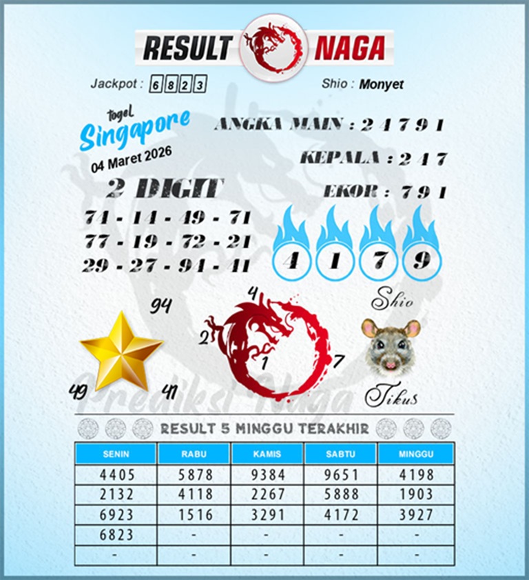 Prediksi Syair Jitu Singapore adalah sebuah kegiatan yang dilakukan oleh para players togel atau pemain angka untuk menebak angka yang akan keluar pada putaran togel berikutnya. Prediksi ini biasanya dibuat berdasarkan data – data sebelumnya, seperti angka yang sering keluar maupun pola – pola yang terlihat dari putaran sebelumnya.